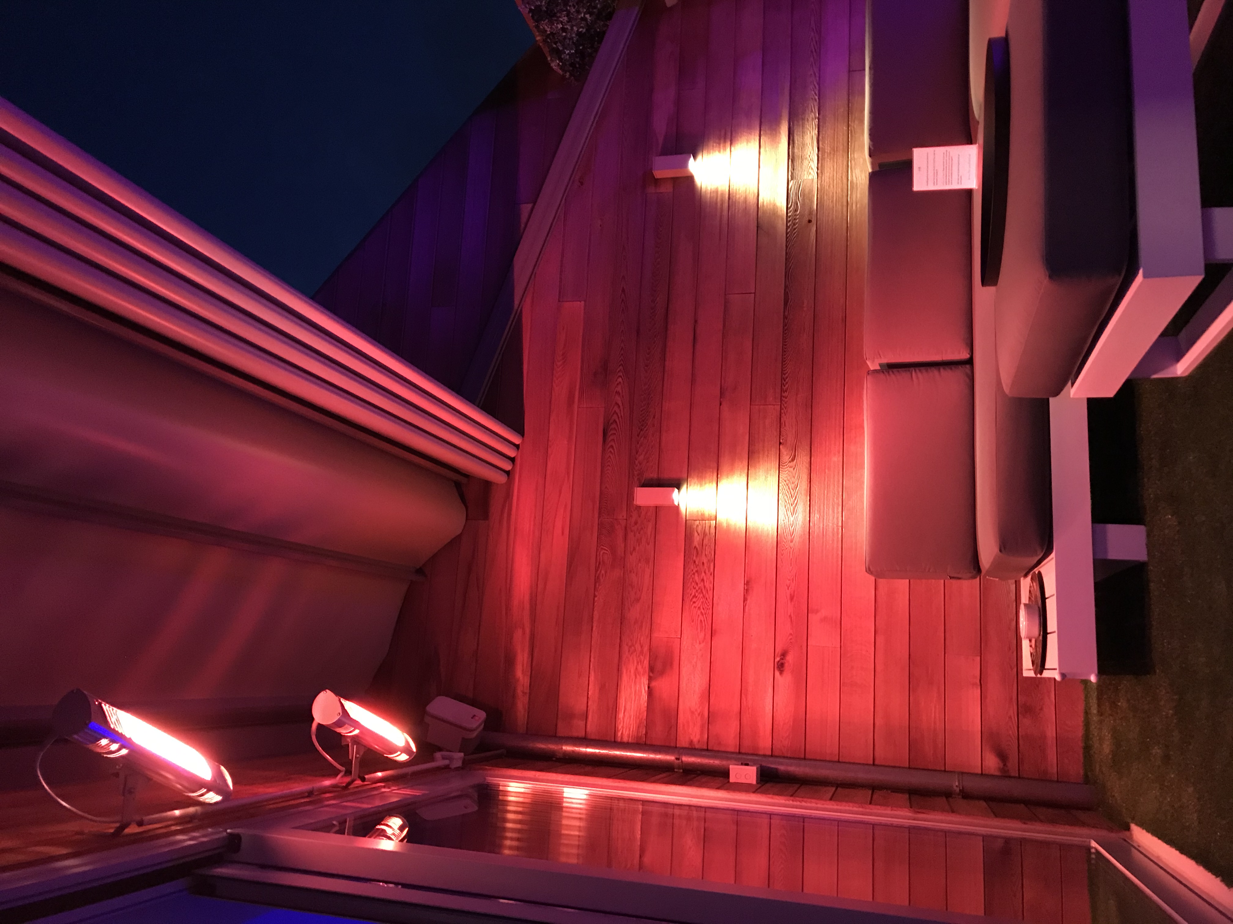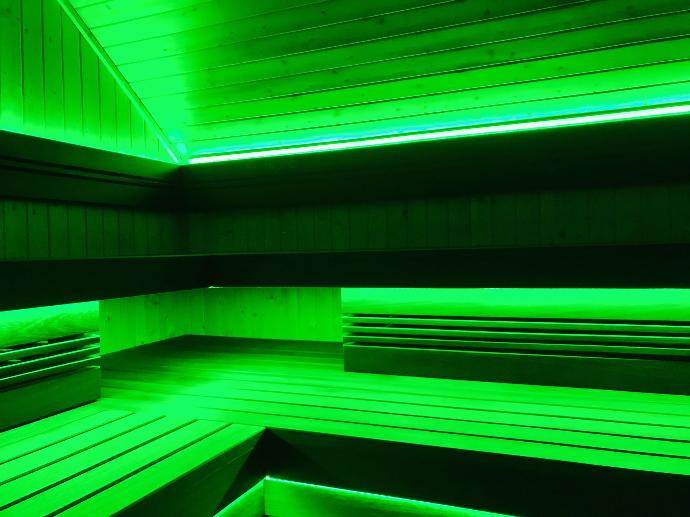 - Kies zelf de kleur van de sfeerverlichting in gans de wellness-unit.