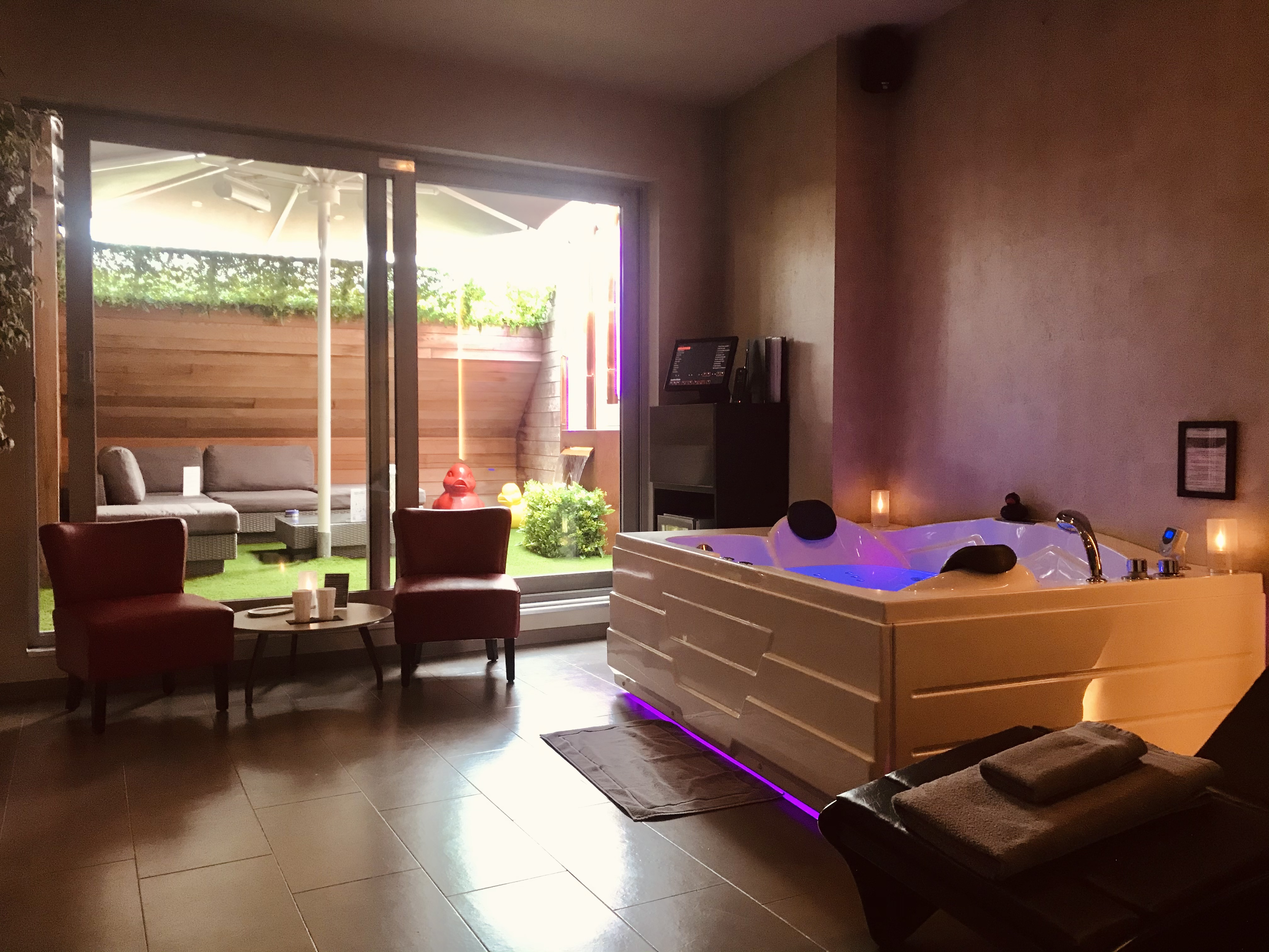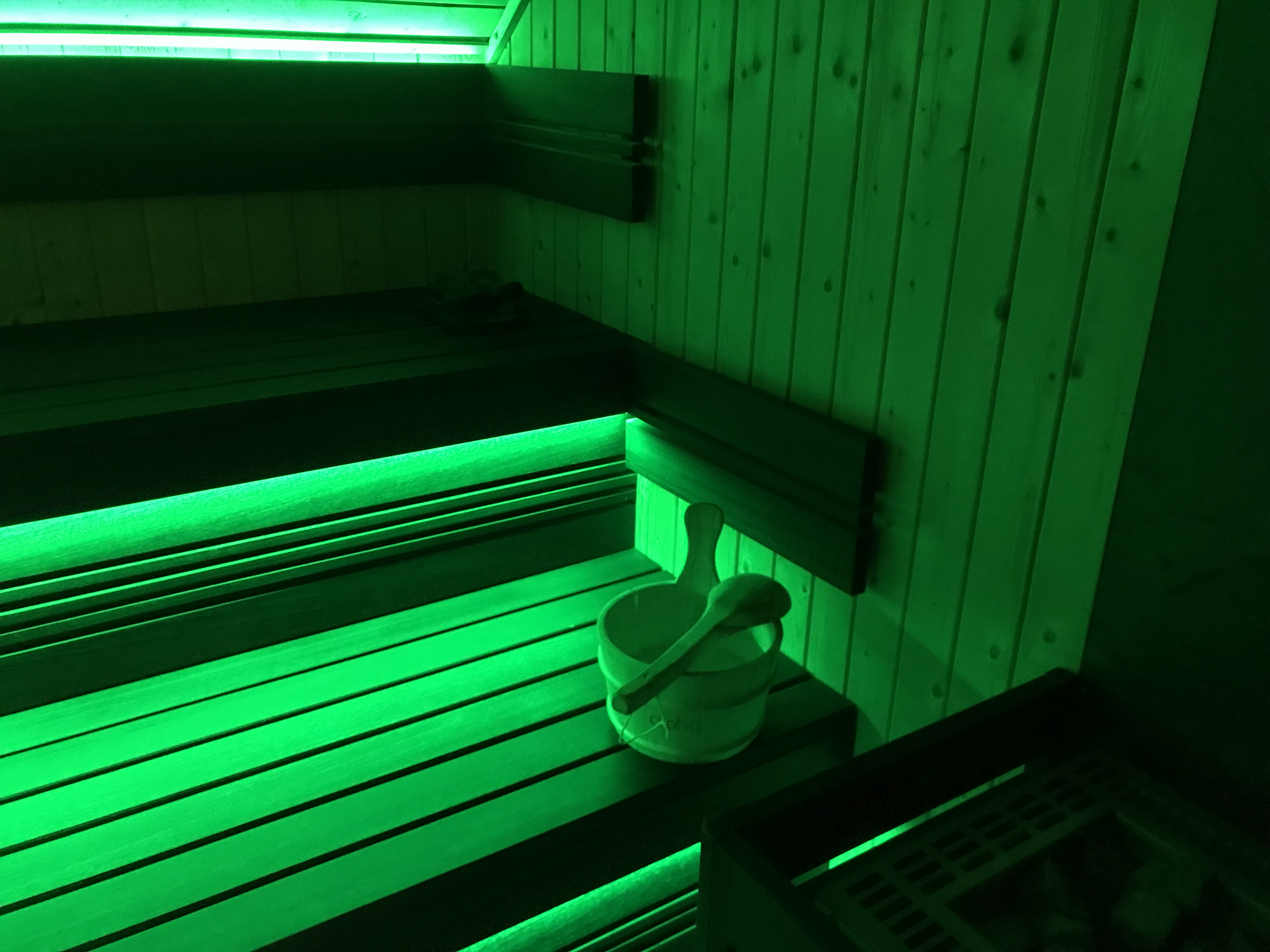 - Kies zelf de kleur van de sfeerverlichting in gans de wellness-unit.
